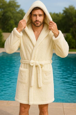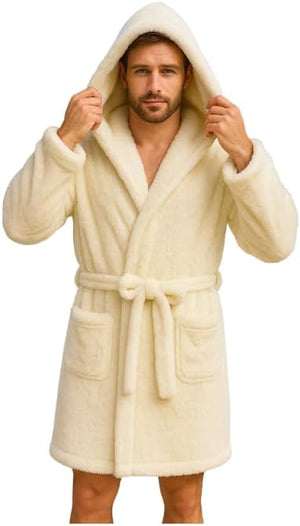 Hooded Fur Robe – Soft and Comfy Long Housecoat for Men