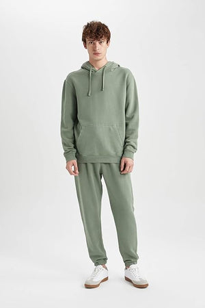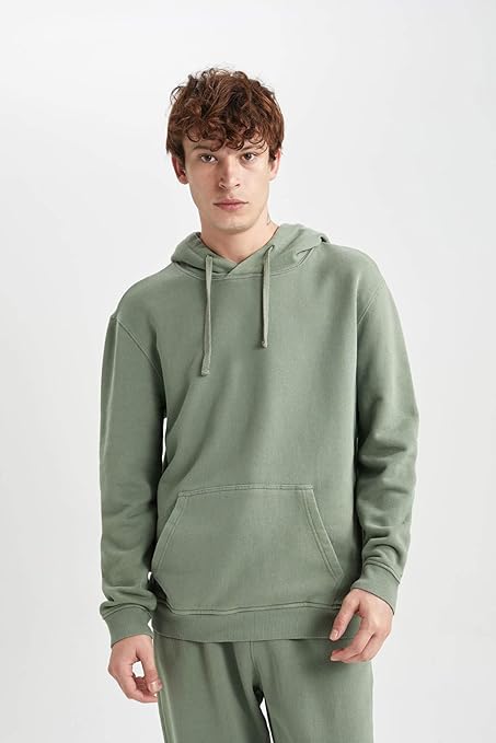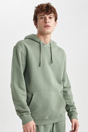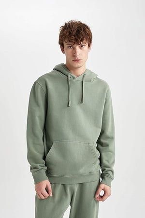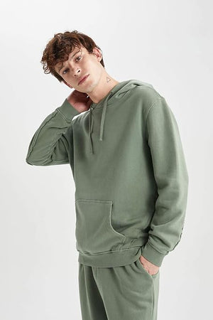 Man Regular Fit Hooded Long Sleeve Khaki Knitted Sweat Shirt